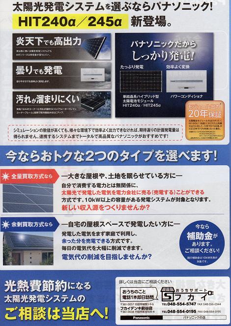 自信を持ってパナソニックHIT太陽光パネルの推進を致します。