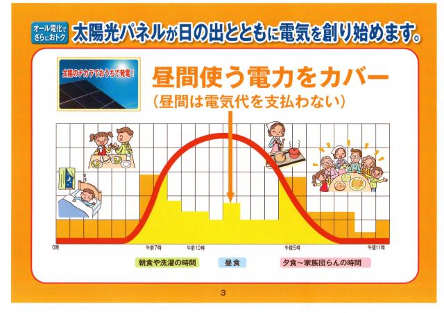 太陽光発電を導入いただきますと昼間は太陽の光で電気を創りますが、実際電気を良く使う朝と夜の電気は電力会社から買うことになります。