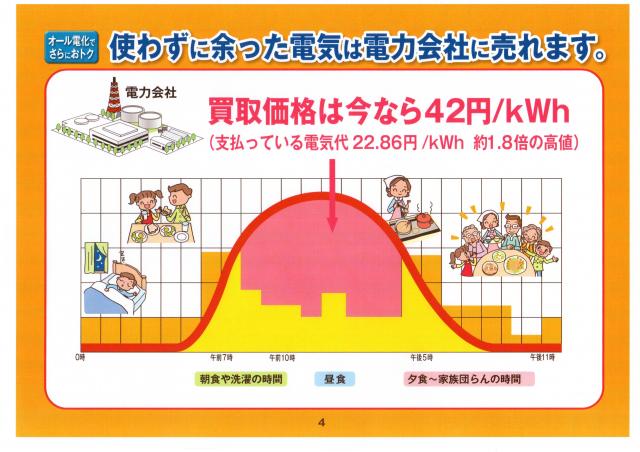 今なら割高な昼間の電気代よりも高い価格なんと42円/1kwhで買い取ります。