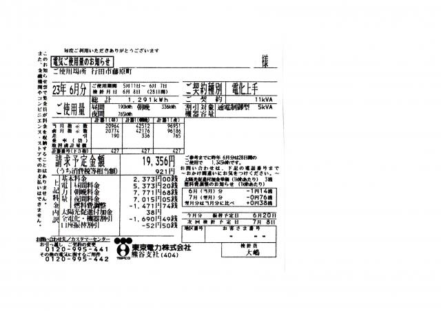 東京電力管内では、一般的な電気代は<従量電灯B>という料金です。この料金は、1ヶ月での使用電力量に応じて単価設定されています。