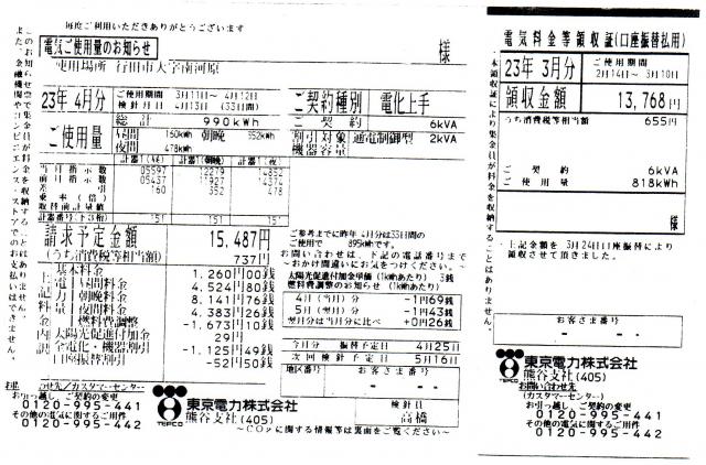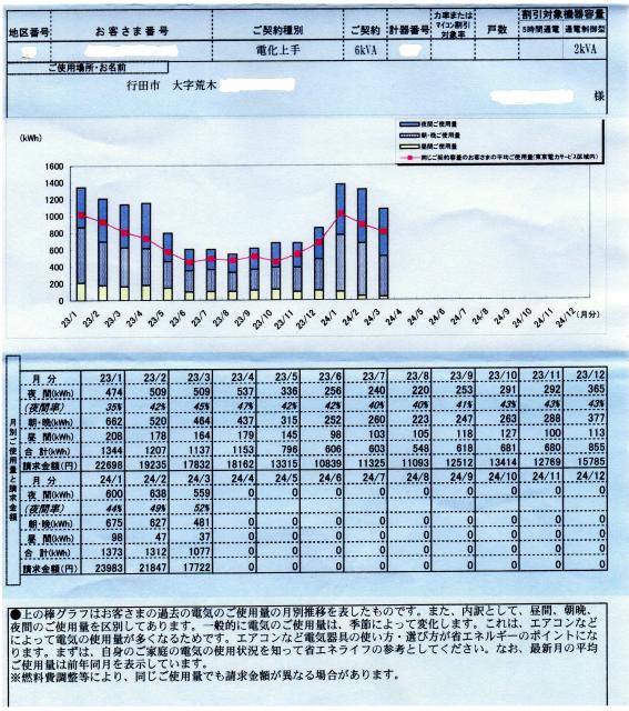まずは昨年23年3月の光熱費をご覧ください。