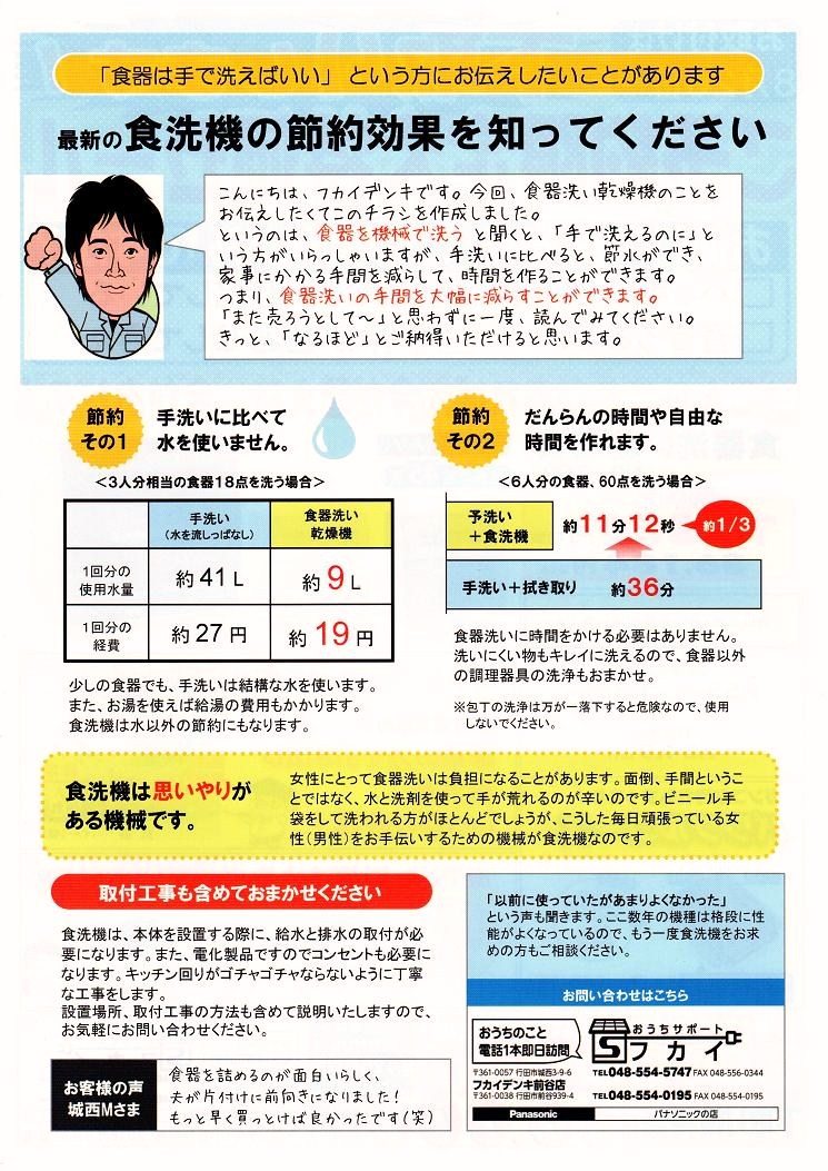 本日は明日の敬老の日を前に、ご主人様から奥様へ食器洗い乾燥機をプレゼントされた行田市埼玉のO様宅へ設置にお伺いしました。