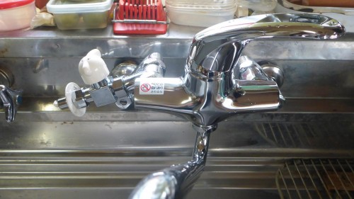お使いの蛇口メーカーにあった分岐水洗を取付ます。