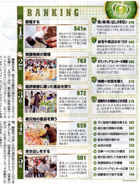 スタッフブログ 2011年5月17日朝日新聞に「今、やってみたいボランティア」の記事が載ってました。