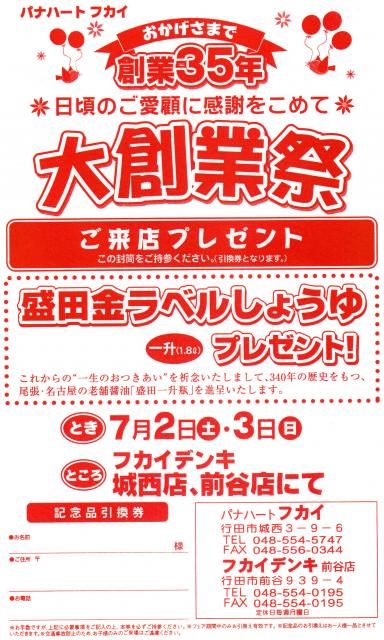 お客様への感謝の気持ちを表したく「大創業祭」を開催いたしますのでご案内申し上げます。