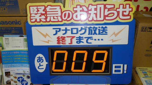 アナログ放送終了まで10日を切りました