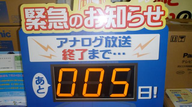 スタッフブログ 2011年7月19日アナログ放送終了まであと5日です。
