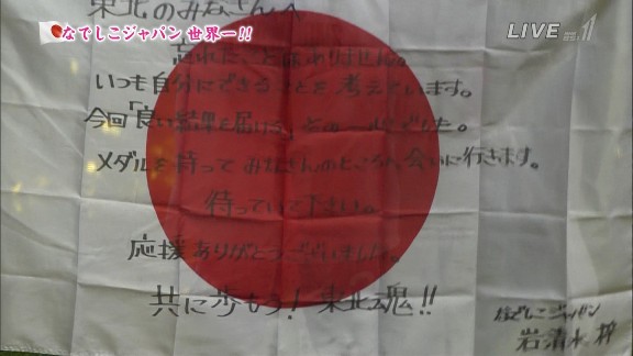 表彰式で掲げられた国旗に書かれていたメッセージです。
