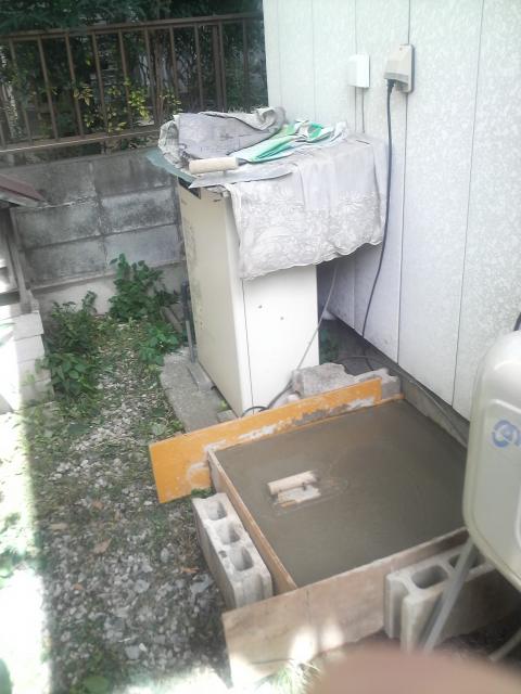 エアコンの室外機を移設してタンクの基礎を作りました。