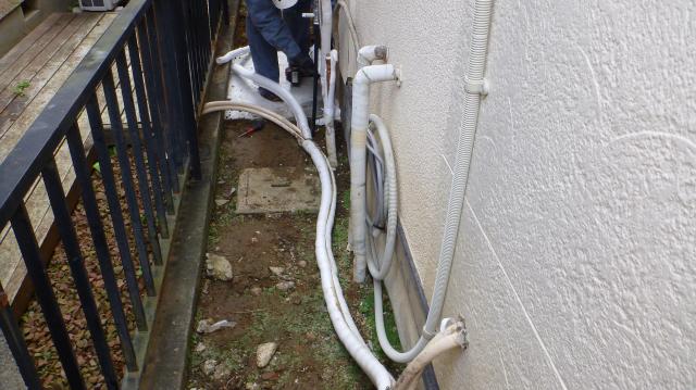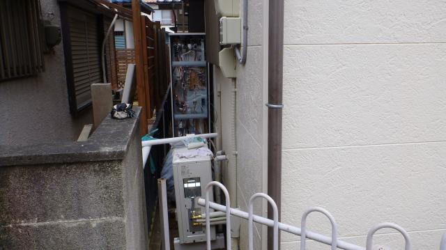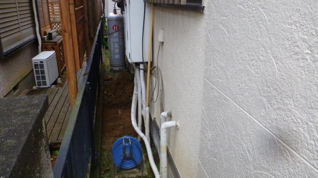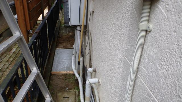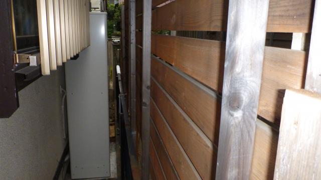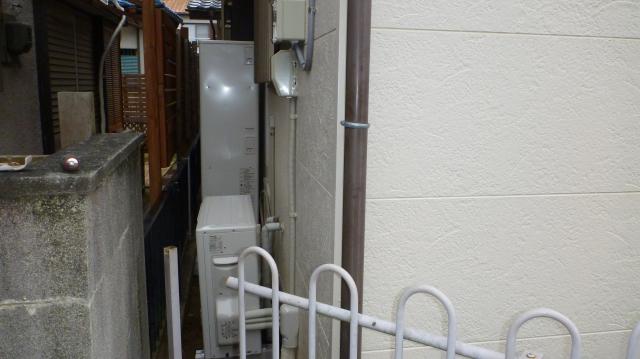 設置場所が奥行き55cmとお隣との境界線が近いので薄型のエコキュートの取付です。