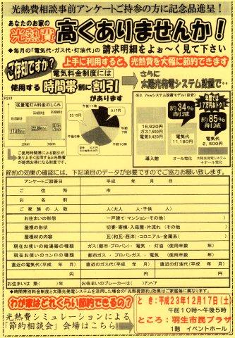 イベント 2011年12月5日先日、 住宅用の太陽光発電の補正予算案が可決しました。
