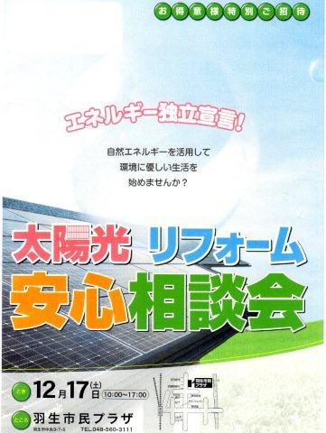 イベント 2011年12月17日本日、羽生市の羽生市民プラザにて、太陽光リフォーム安心相談会を行いました。
