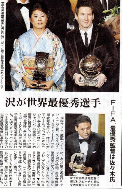 サッカーなでしこジャパンの澤穂希選手がFIFAバロンドールに選ばれました!