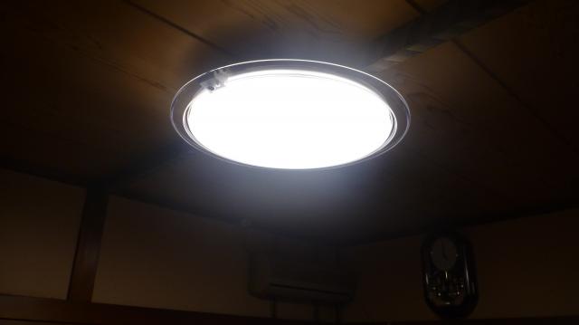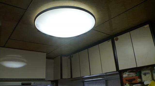 こちらのお宅では当初、台所の照明の交換をご依頼されましたが、どうせ新しく変えるのなら「一番使う部屋の照明を交換した方が節電になる」ので、今まで居間に付いていた照明を台所へ、居間へLED照明を取り付けさせていただきました。