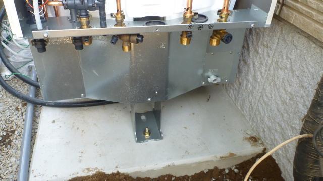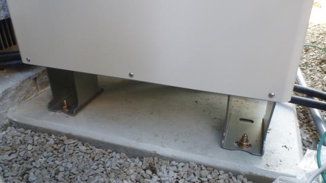 激安販売店さんや訪販業者さんの中で、価格競争から工事費を安く上げるため簡易ブロックでの設置をされるところもあるそうですが、給湯タンクはお湯が入った状態では400~500kg超の重さになります。