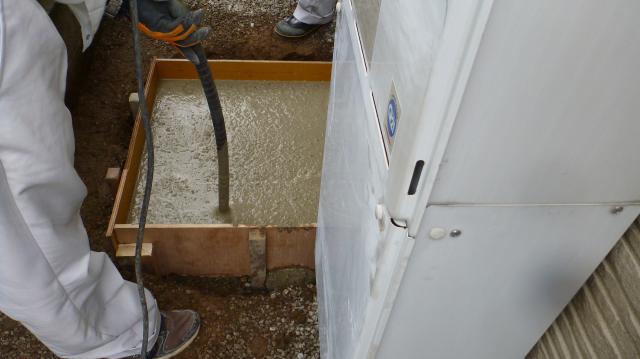 生コンを均しながら入れていきます。