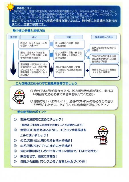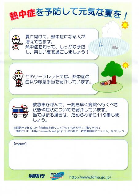 こちらは消防庁より配布されている熱中症予防マニュアルです。