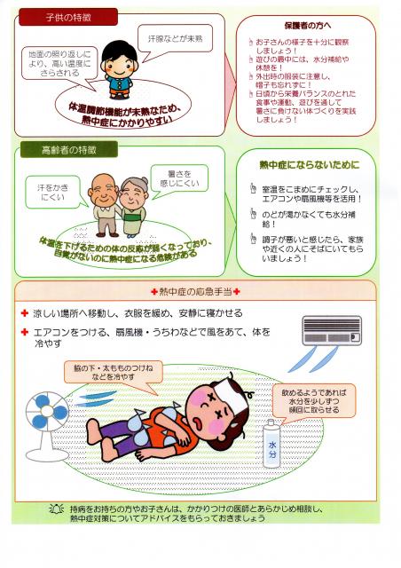こまめな水分補給とエアコン・扇風機を上手にお使いください。