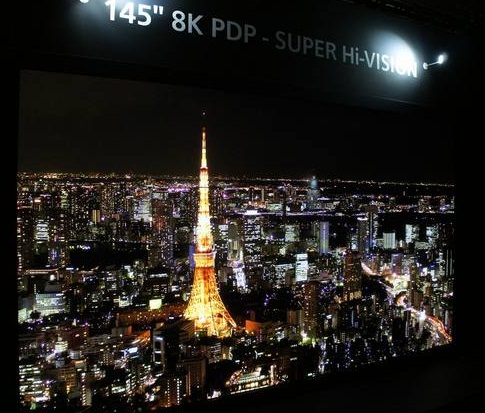 今回の一番の目玉である、8K対応のスーパーハイビジョン、145インチのプラズマディスプレイも参考出品されてました。
