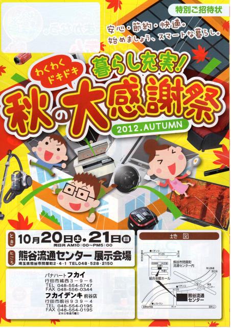 既にお手元にお届きだと思いますが、明日、明後日は熊谷流通センターにて、パナソニック秋の大感謝祭を開催いたします。