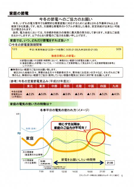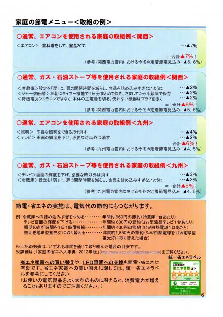 先日の衆院選で多くの党が脱原発を訴えていましたが、私たちも家庭でできる節電をもう一度見直す時だと感じました。