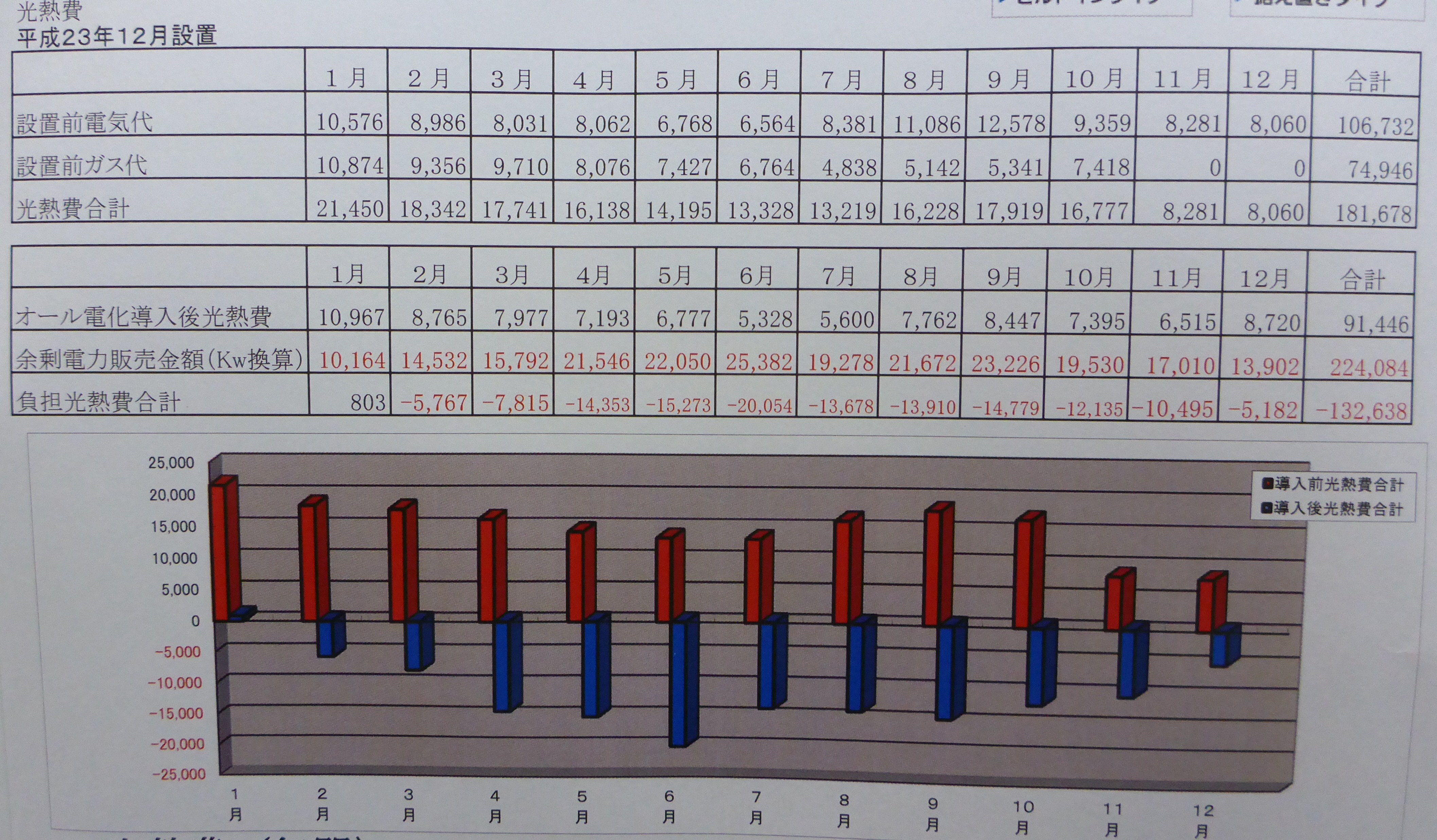 電気・都市ガス併用住宅から太陽光付きオール電化住宅にされた行田市富士見町のK様より嬉しいご報告を戴きました!