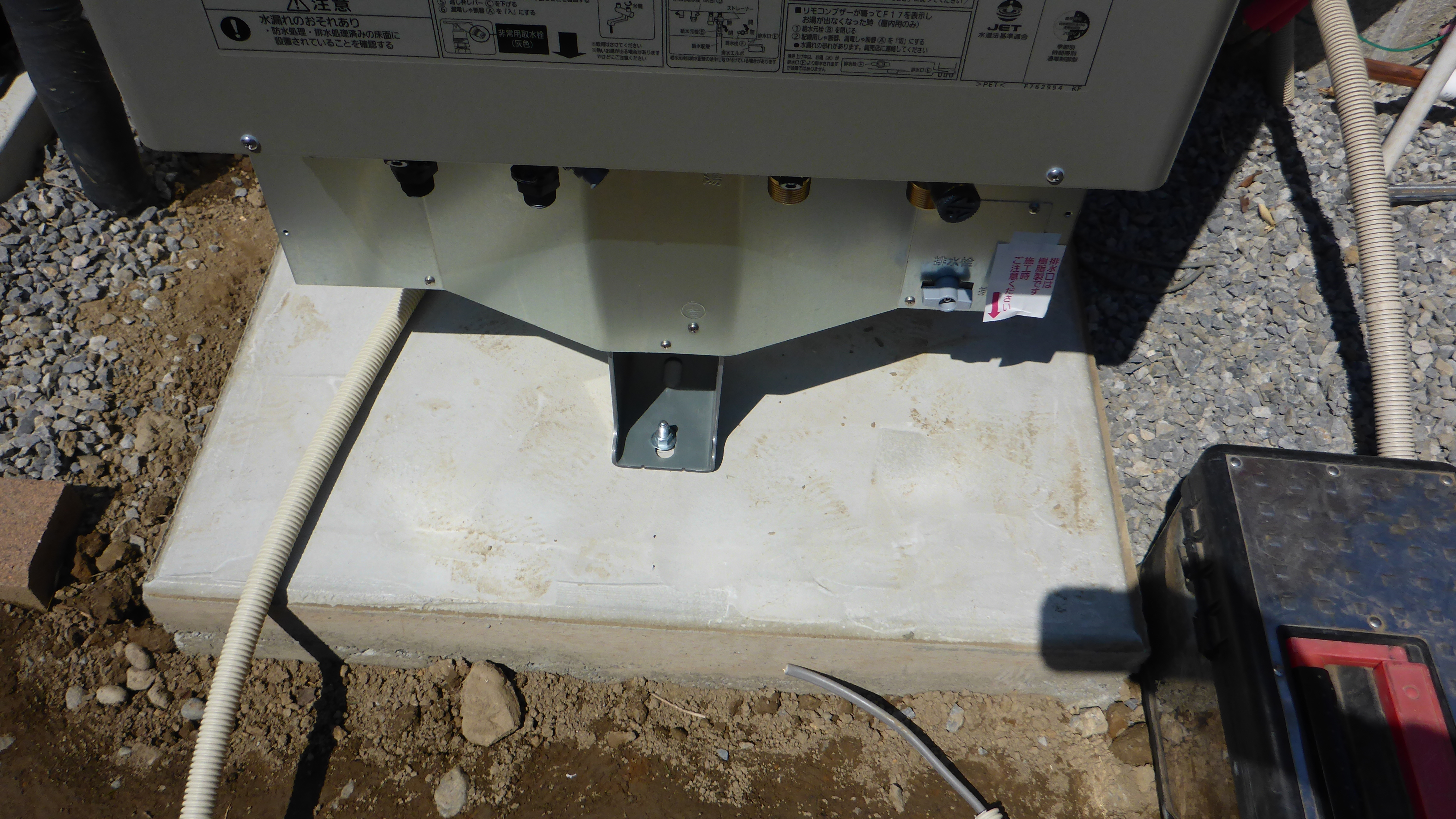 エコキュートのタンクは空の状態では90㎏位ですが、お湯が入ると400~500㎏にもなりますので、基礎工事はとても重要なんです。