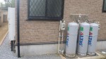 ガスボイラーを外し、タンクを基礎にアンカーボルトで固定し配管工事を行います。