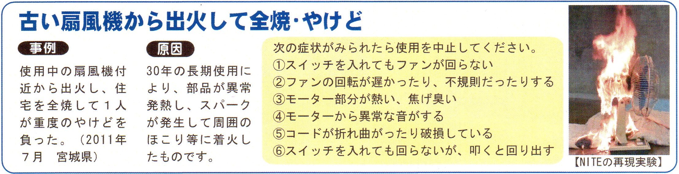 中でも扇風機 は「経年劣化」による事故が多く発生しており注意が必要です。