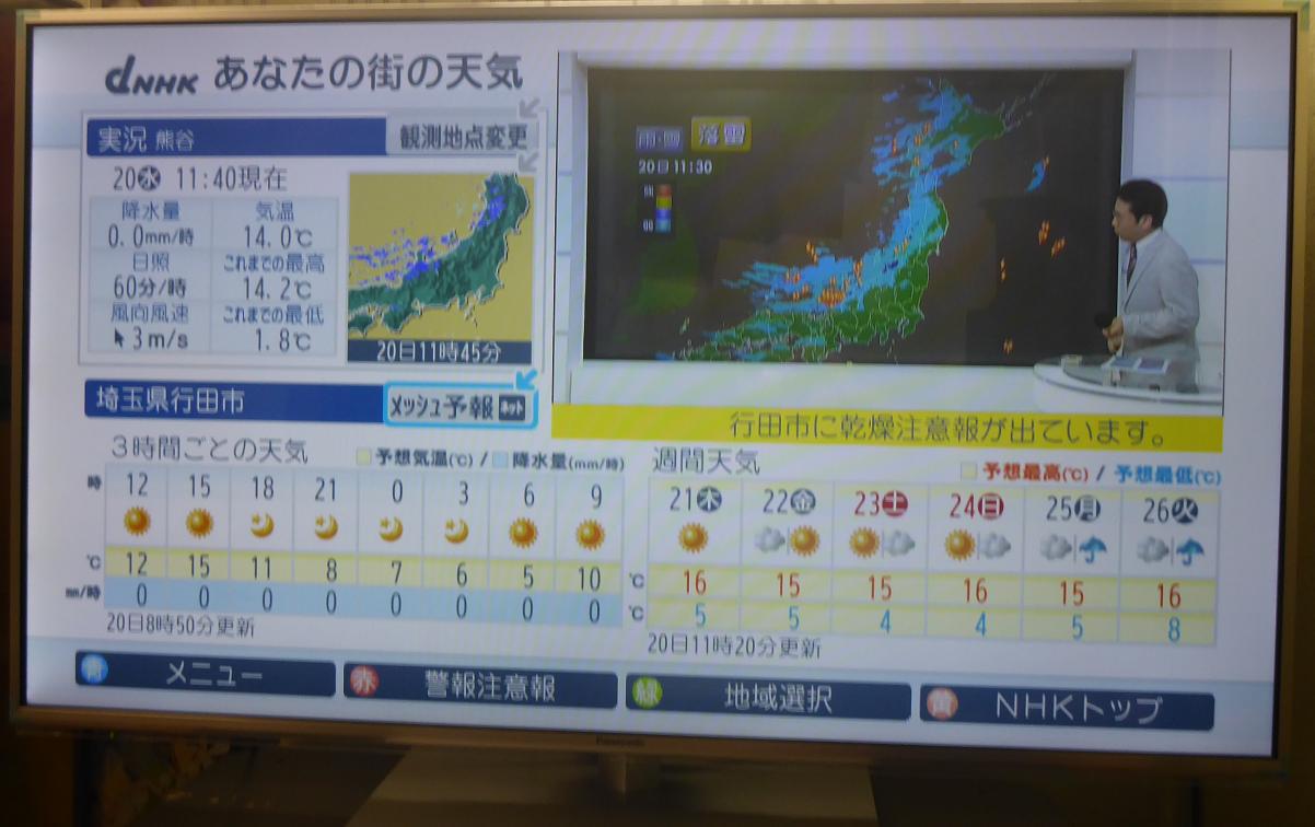 リモコンの「d」ボタンを押すことで、住んでいる場所の天気予報がピンポイントで見れたり・・・