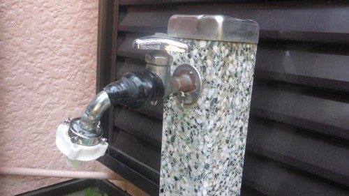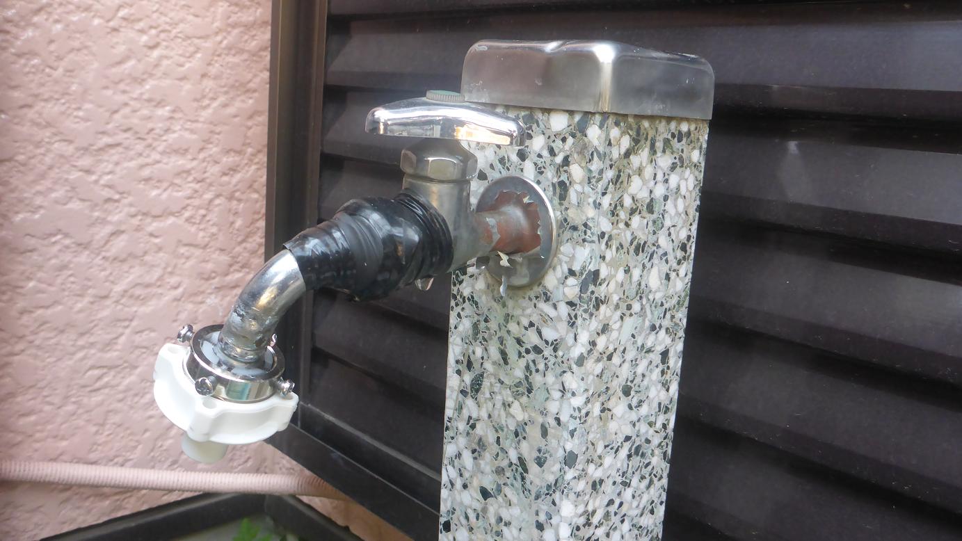 こちらは、庭の蛇口から水漏れしてテープで応急処置をして使用されてました。