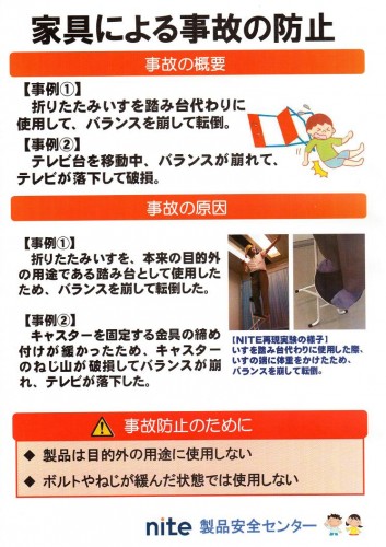 (事例1)折りたたみいすを踏み台代わりに使用したため、バランスを崩した ものと考えられます。