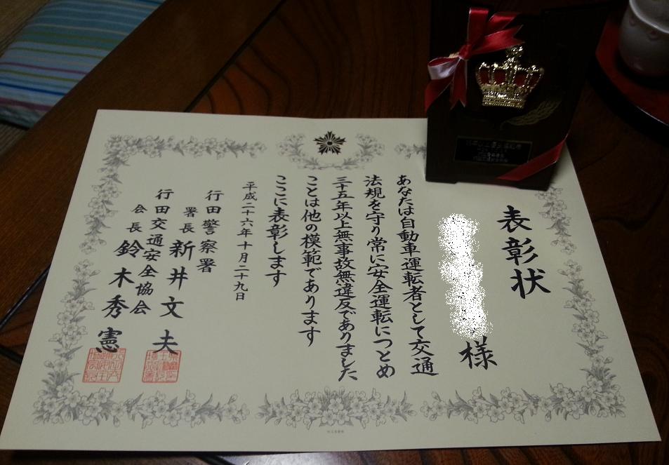 U様の奥様、なんと35年以上無事故無違反の優良運転者ということで、