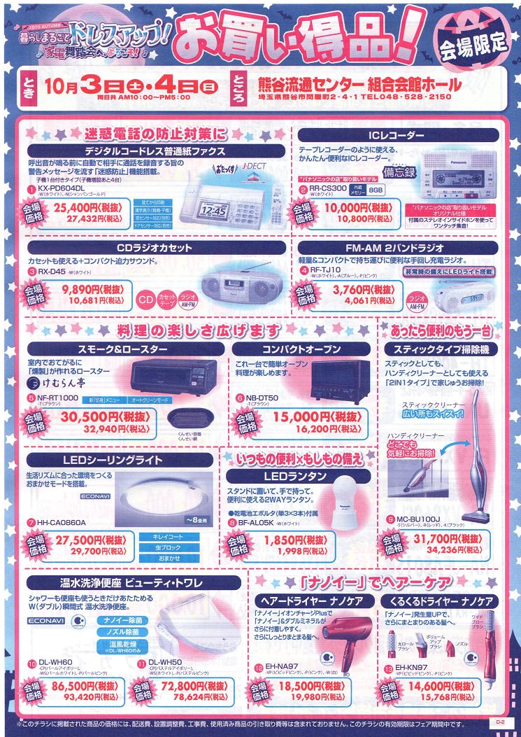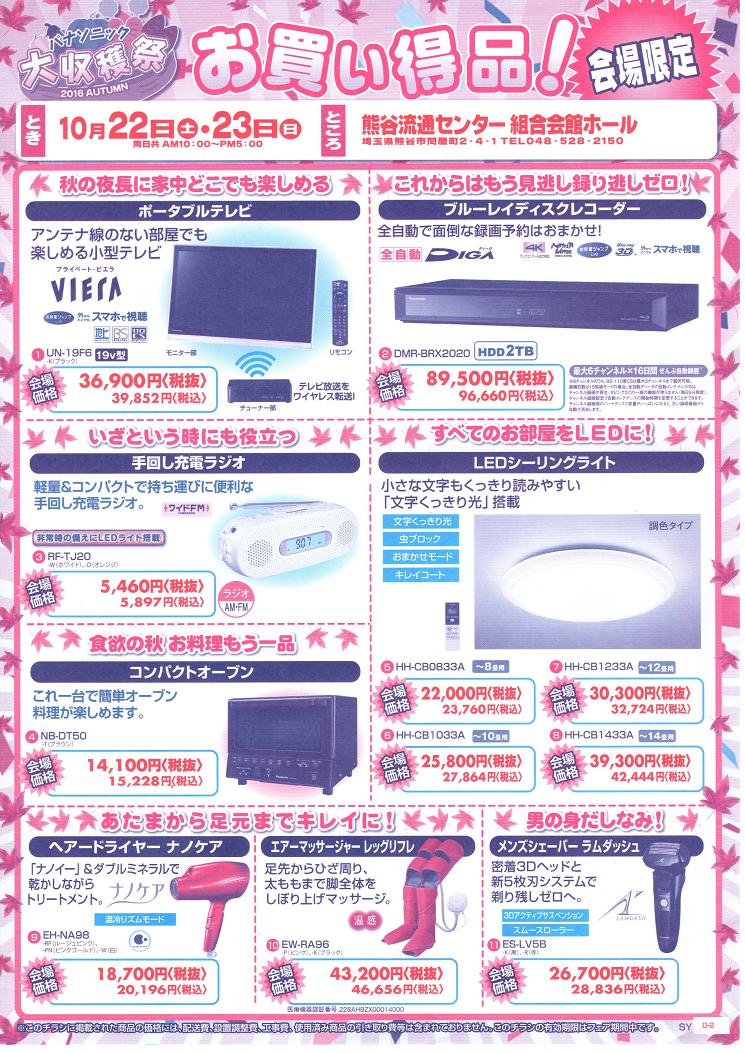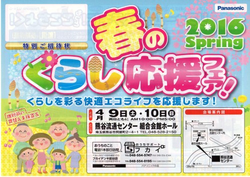 【熊谷流通センター4月1・2日】パナソニック春のくらし快適フェア!のお知らせ