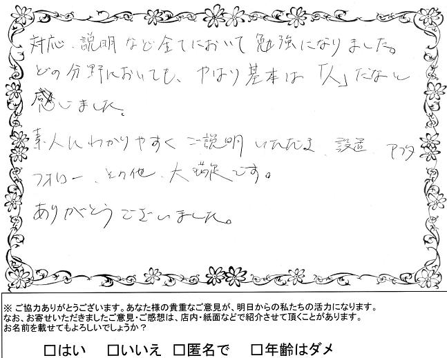 行田市埼玉S様より大変嬉しいお言葉を戴きました!
