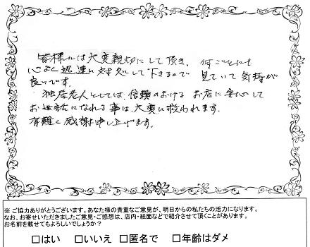 息子さん娘さん家族とファミリーで当店をご利用くださり大変感謝しております。