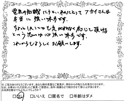 行田市向町Y様より大変嬉しいお言葉を戴きました!