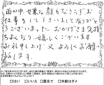 行田市城西U様より大変嬉しいお言葉を戴きました!