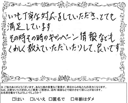 行田市本丸N様より大変嬉しいお言葉を戴きました!