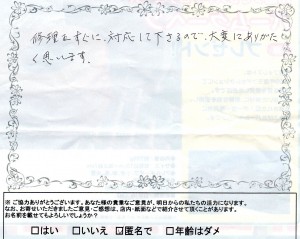 行田市荒木A様より大変嬉しいお言葉を戴きました!