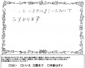 鴻巣市箕田T様より大変嬉しいお言葉を戴きました!