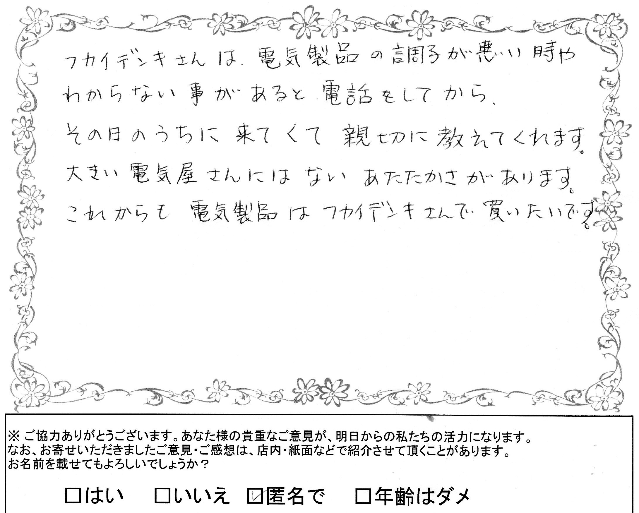 数多くの電気店がある中で当店をご利用いただき誠にありがとうございます。