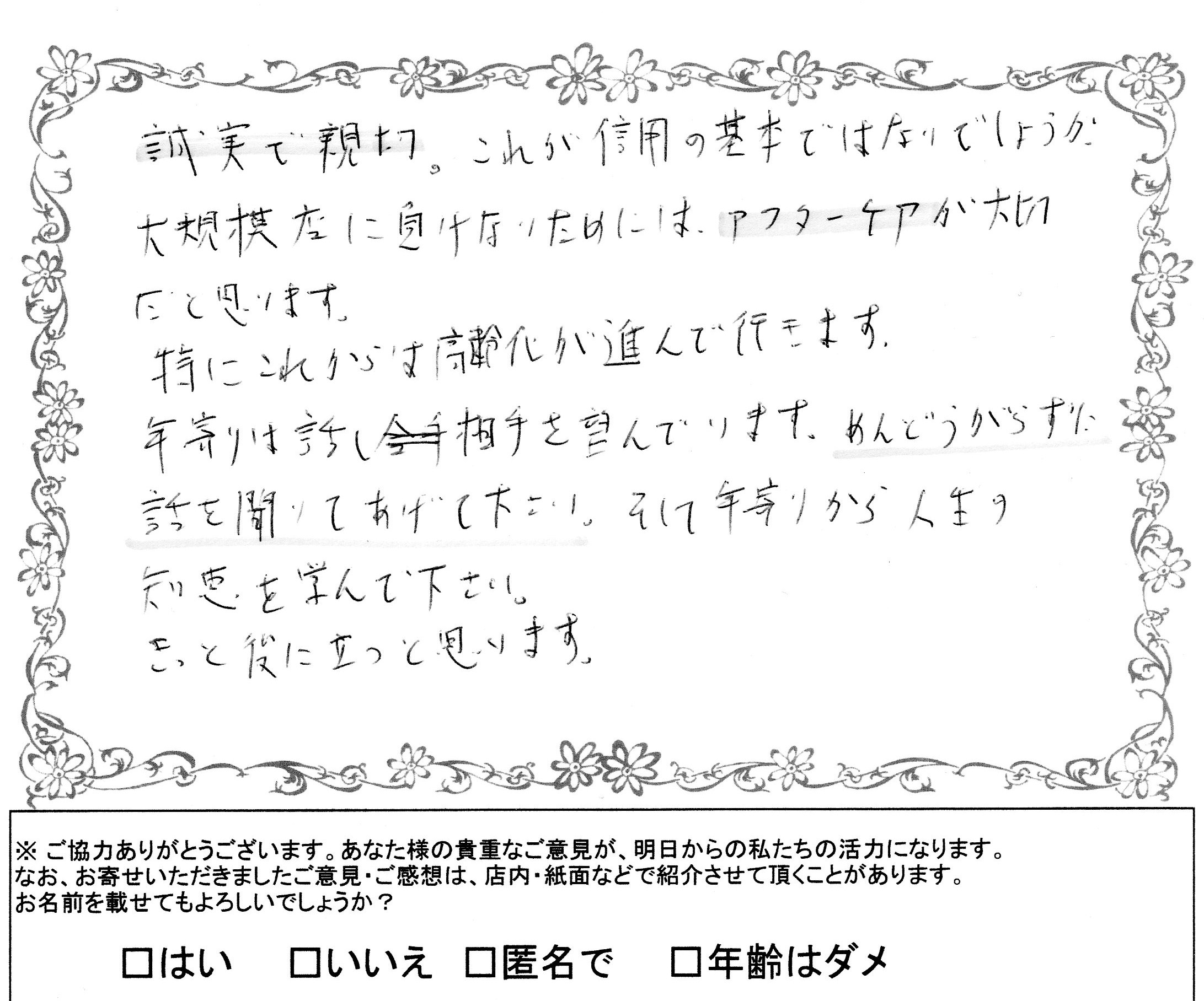 長年当店をご利用いただきありがとうございます。