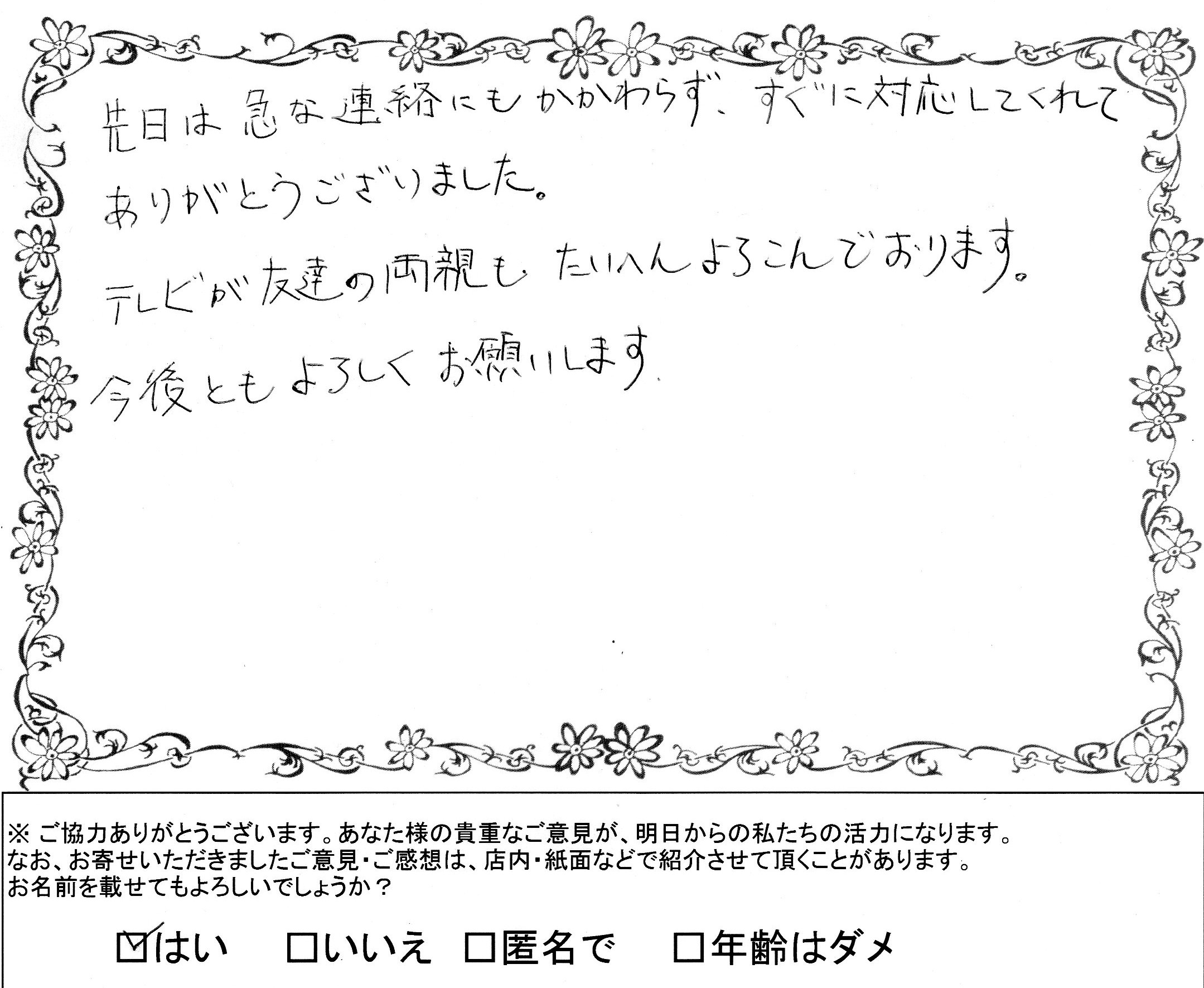 お客様の喜びの声が当店の元気の源です!