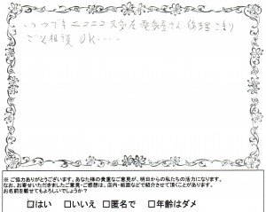 息子さん夫婦や奥さんの実家等、ファミリーで当店をご利用いただき本当にありがとうございます。