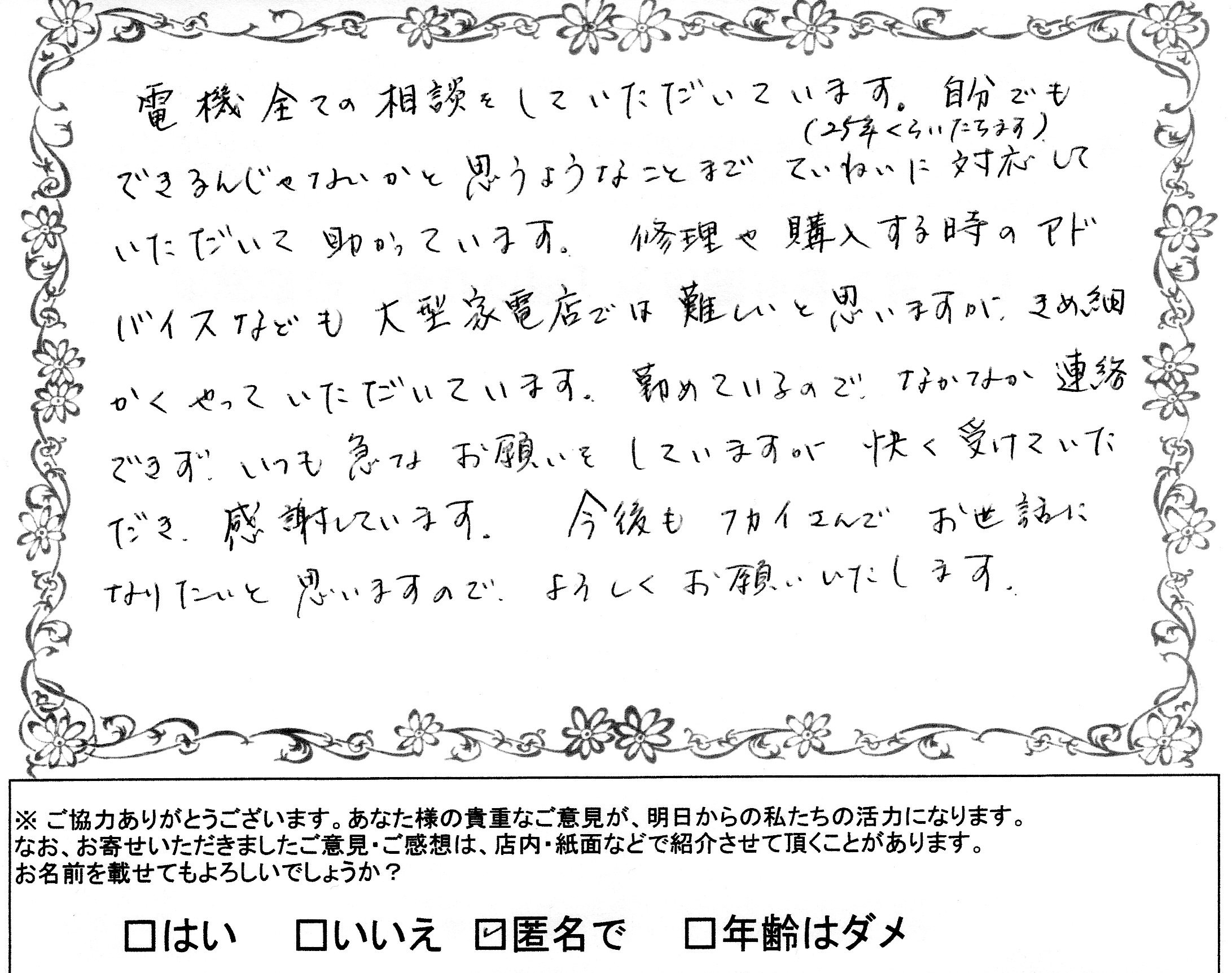 鴻巣市下忍M様より大変嬉しいお言葉を戴きました!