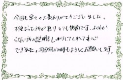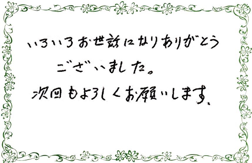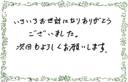 こちらこそ数多くのお店がある中から当店をご利用くださり大変感謝しております。