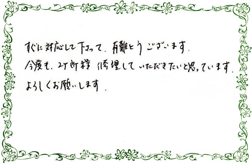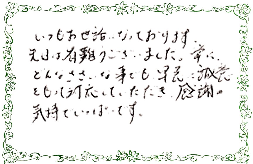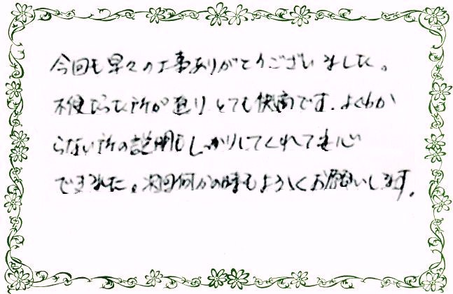 行田市城西S様より大変嬉しいお言葉を戴きました!