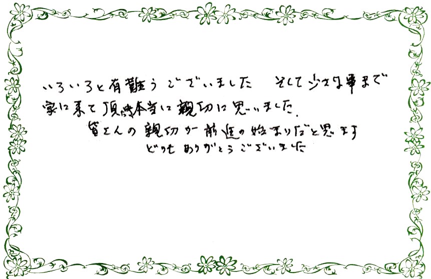 行田市城西M様より大変嬉しいお言葉を戴きました!