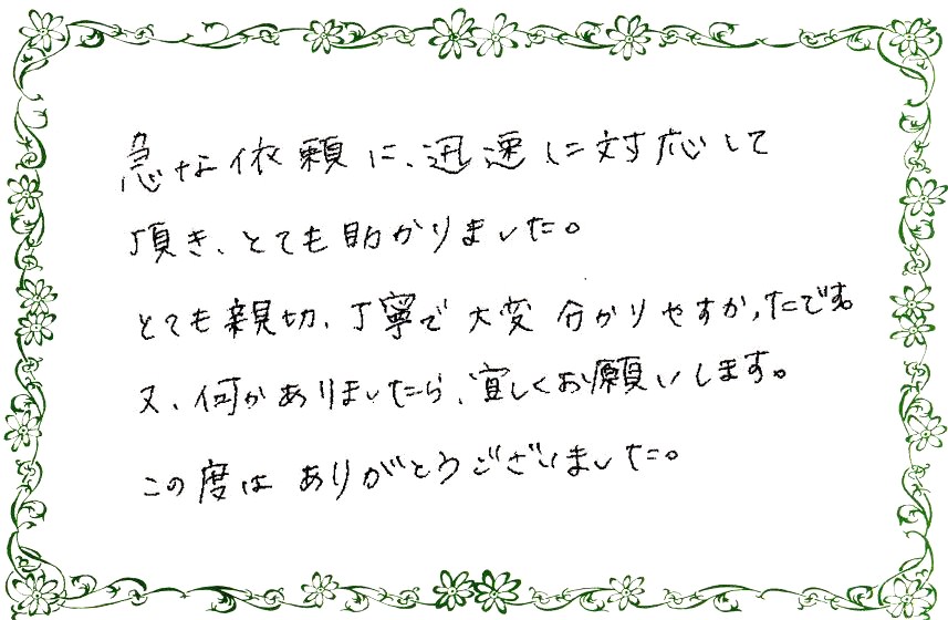 行田市城西O様より大変嬉しいお言葉を戴きました!